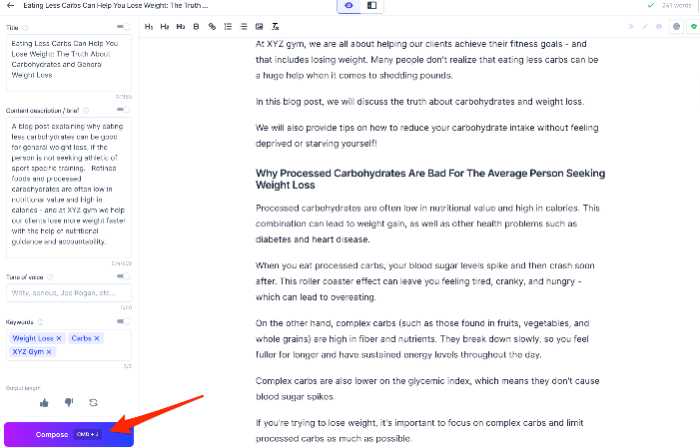 While clicking the Compose button for the 3rd time, Jasper decided it was time to move on, and it created a new topic for me "How to Reduce Your Carb Intake". Turns out it was a pretty perfect topic shift, so I'm leaving it.