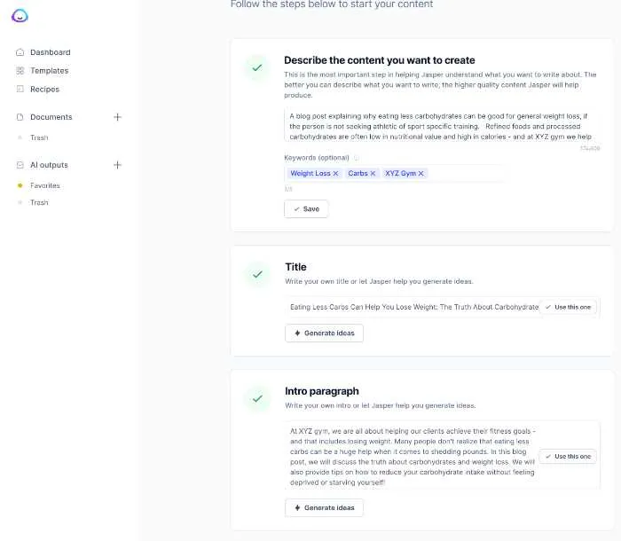 Start your description with "a blog post" so Jasper knows you are writing a blog post.
